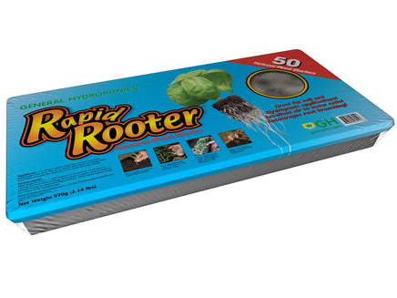 Rapid Rooter plugs contain a special matrix of composted organic material bound together by plant-derived polymers. This material is created through a scientifically controlled process that produces large populations of beneficial microbes which colonize young roots and help young plants resist disease while maximizing nutrient uptake. Fortified with General Hydroponic micronutrients, they have an optimal air-to-water ratio.