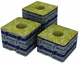 Grodan Blocks -Grodan Delta blocks are the most uniform blocks available on the market. They feature improved grooves at the base to promote better drainage. They are available in a large assortment of sizes and configurations to suit all types of plants. These growing blocks are used for direct sowing or "blocking on" of Macro and Multiblock raised plants. AO 36/40 plugs fit well into the hole sizes provided by the blocks. The blocks can then be placed on top of a slab to provide for a larger growing volume. Hugo is the largest of the growing blocks. It provides enough growing volume to support a larger plant, so it does not need to be placed on top of a slab.