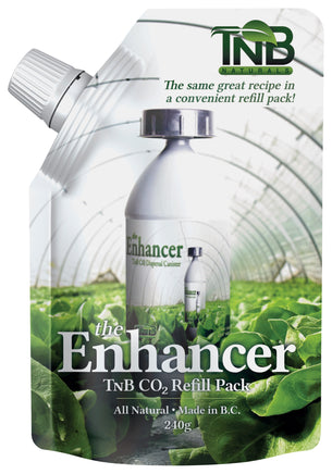 The Enhancer by TNB Naturals now comes in a convenient refill pack! The TNB CO2 Refill Pack will now give growers the ability to reuse their existing Enhancer bottle while saving money and reducing their environmental footprint at the same time. Simply empty the contents of the original bottle and give the bottle a quick rinse. The contents of the refill pack can be added and instant CO2 is once again available for use. Boosting plant production and improving overall health, CO2 is an essential element of photosynthesis and often one of the most overlooked components of plant growth. The TNB CO2 Refill Pack consists of the same great recipe while also combining convenience and an amazing option for those looking for passive CO2. Research has shown that plants can use up to five times the CO2 that naturally occurs in the air and with the Enhancer known for delivering levels of CO2 only comparable to a propane or natural gas burner, there is no question many growers will be turning in their tanks or introducing CO2 with this safer and all-natural method.