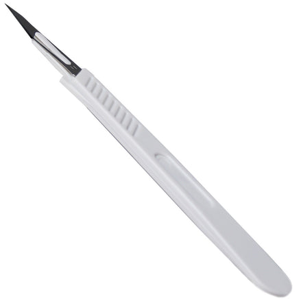 These sterile, disposable scalpels are ideal for clean and accurate cuttings. Each box contains 10 individually wrapped scapels. The scalpel's plastic handle is marked in cm increments to help insure precise cutting. Each scalpel has its own safety sheath, which protects both the blade and keeps it sharp, as well as adds a layer of safety for scalpel users.