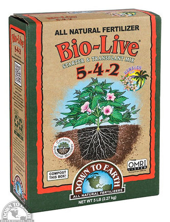 Bio-Live is a unique starter and transplant fertilizer featuring a premium blend of marine byproducts infused with a diverse mixture of beneficial microbes. Select mycorrhizal fungi and bacterial species in Bio-Live, chosen especially for Hawaiian soils, colonize plant roots and expand into the surrounding soil to greatly increase the absorptive surface area of root systems. The result for your plants is increased nutrient uptake and improved access to soil moisture. Ideal for all plant types, Bio-Live provides the nutrients your plants need for expansive root systems, heavy crop yields and bountiful flowers, fruits, herbs and vegetables.