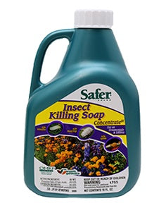 Safer Insect Killing Soap Concentrate kills aphids, grasshoppers, mealy bugs, mites, thrips and whiteflies, but does not kill beneficial insects.