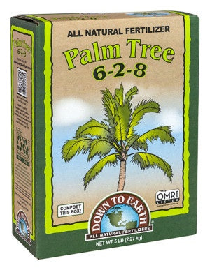 Formulated to provide essential macro, micro, and secondary nutrients for all varieties of palms and cycads, Down To Earth Palm Tree 6-2-8 is an ideal choice for powering strong growth and preventing yellowing or curling fronds. For use both in ground and in containers.