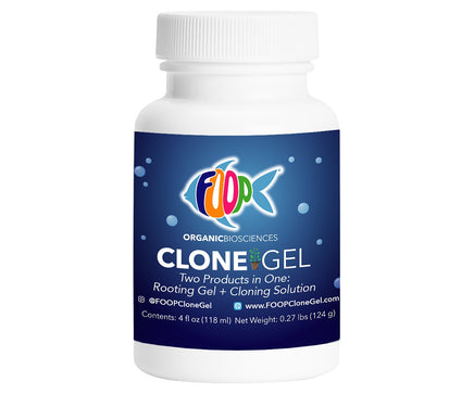 FOOP Clone Gel is like having two products in one: it’s a rooting gel, but it also contains cloning/nutrient solution. Made from fish poo and more than a dozen other organic ingredients, FOOP Clone Gel is an all-natural rooting and propagation agent that dramatically accelerates root growth and plant development. FOOP Clone Gel works great with FOOP Mist to produce white, fuzzy, healthy roots quickly and avoidyellow discoloration and other stresses.