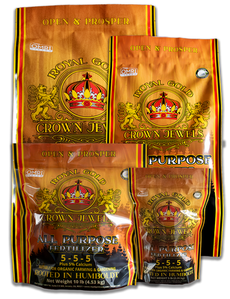 Apply 3⁄4 – 1 cup of Crown Jewels All Purpose to one cubic foot or about 2 – 3 1⁄2 tbsp. per gallon of growing medium, depending on plant size and nutrient requirements. Crown Jewels All Purpose should be applied to soil one week prior to planting and thoroughly watered. Additional top dress applications may be necessary depending on days to harvest, environmental conditions, plant needs, and crop type.